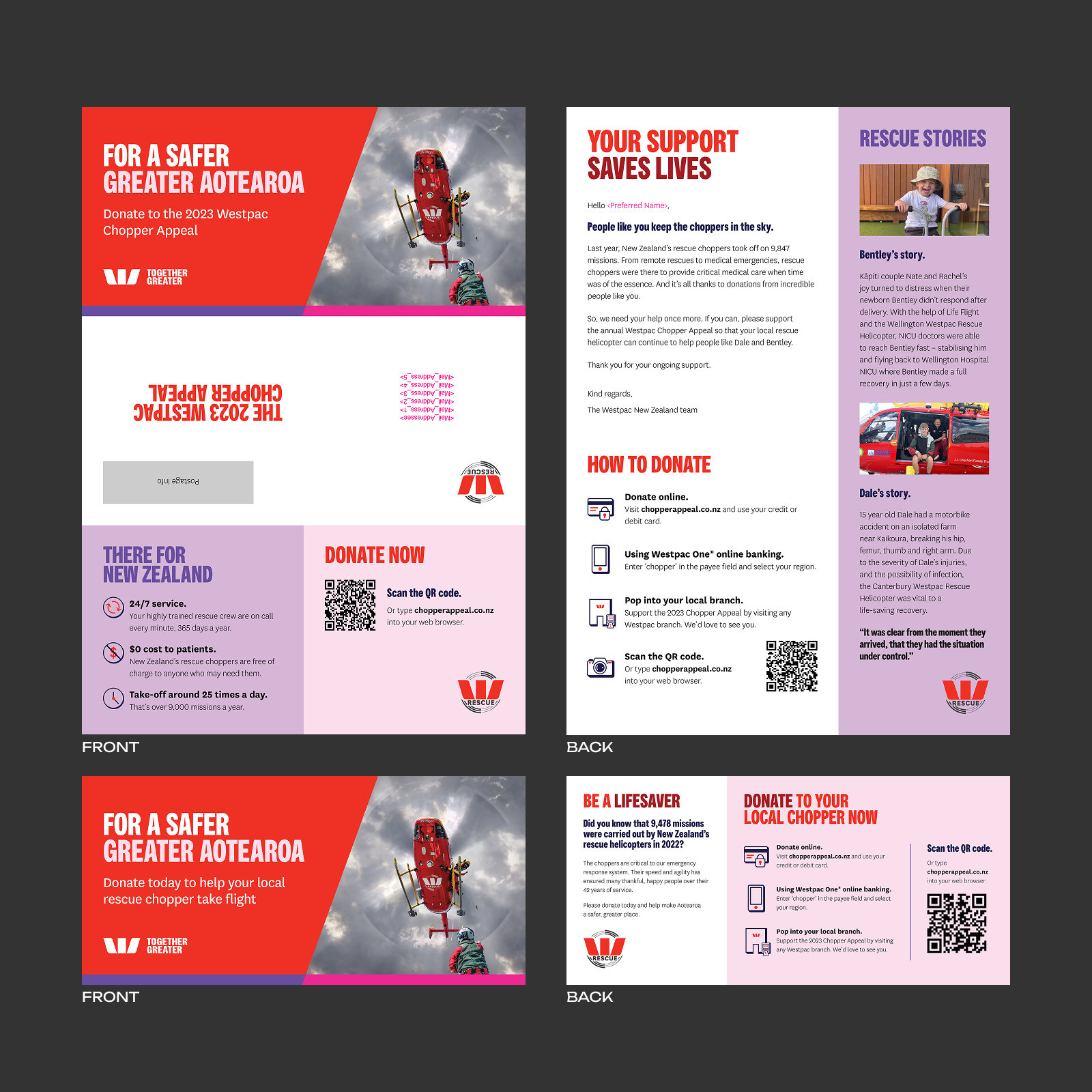 We developed a series of communications that felt distinctly Westpac, while using bold, attention-grabbing design to set it apart. Real rescue stories and carefully crafted messaging helped highlight the impact and importance of the service, creating a strong emotional connection with readers.