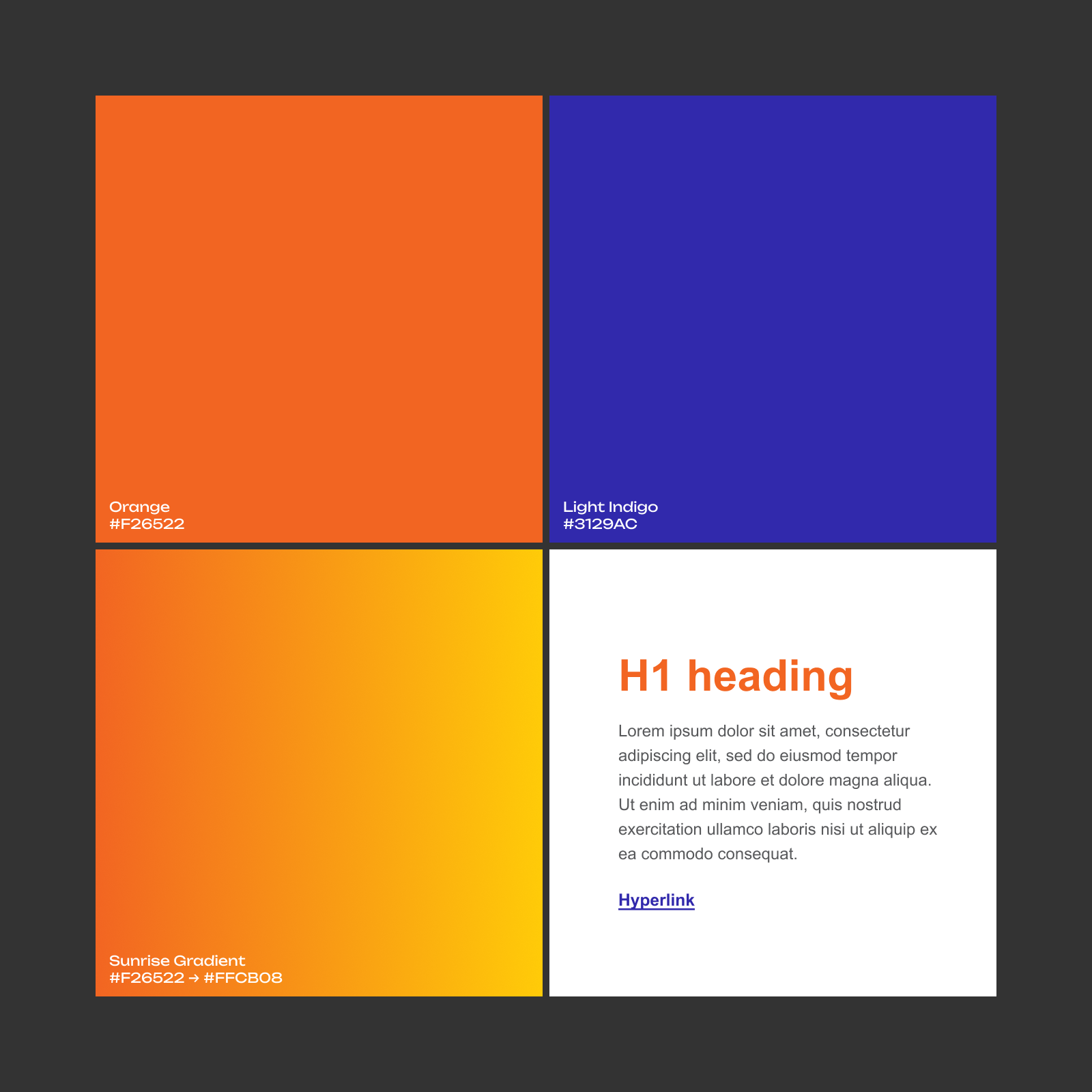 This resulted in Z’s brand orange being reserved for larger text only, requiring an alternative for smaller elements such as hyperlinks. Indigo was introduced for this purpose. As Z’s marketing assets already make strong use of orange and yellow, the template itself was designed to remain largely neutral, allowing content to stand out without compromising accessibility.