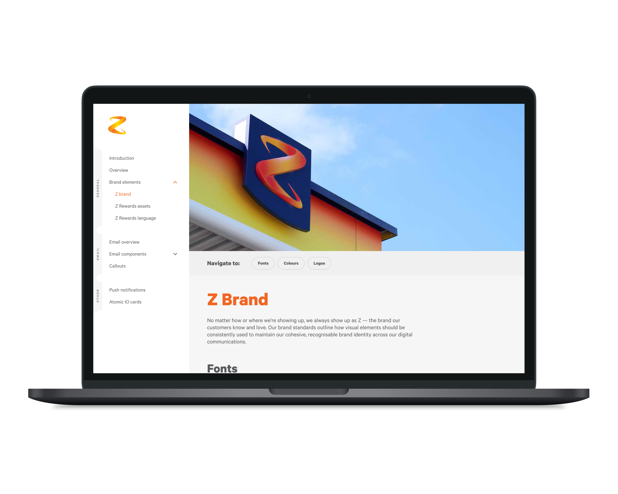 Accessibility was a key focus from the outset. While Z Energy’s brand guidelines are visually distinctive, some colour combinations didn’t meet digital accessibility standards. We tested these thoroughly and presented clear, evidence-based recommendations back to the client.